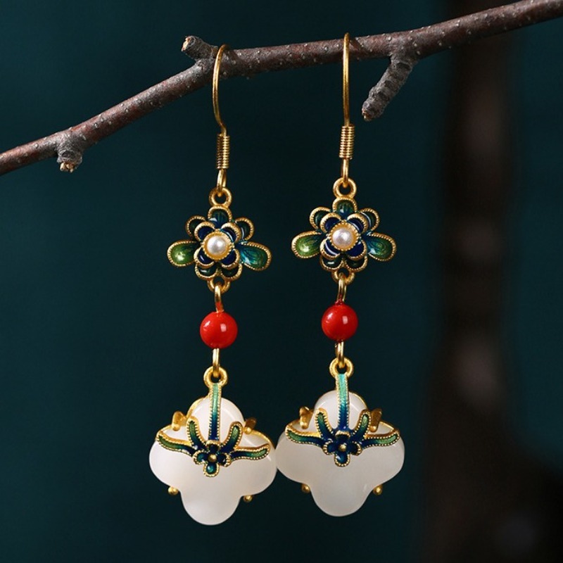 彤彤兔 复古风国潮四叶草流苏耳坠珐琅合成玉石彩景泰蓝古装汉服搭配耳环