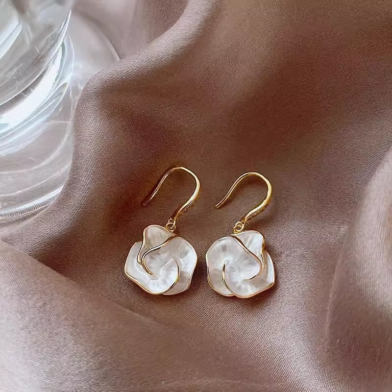 山茶花朵耳环女小众轻奢气质高级感耳钉2024新款爆款独特耳坠耳饰