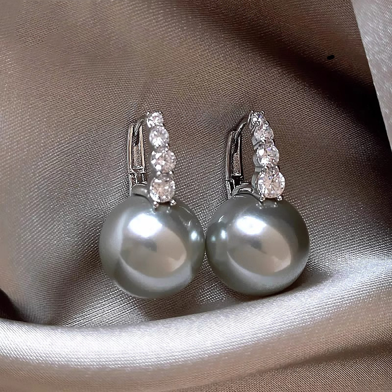 彤彤兔 轻奢锆石灰珍珠耳环女小众设计感高级气质耳扣爆款秋冬复古耳饰