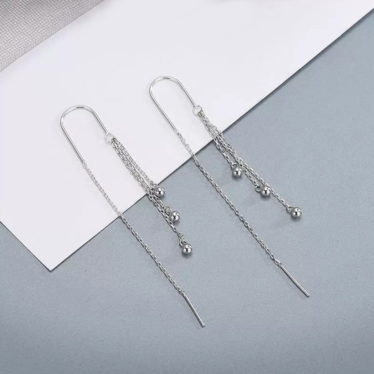 S925银耳线女高级感小清新光珠流苏耳环甜美耳线耳饰 222337
