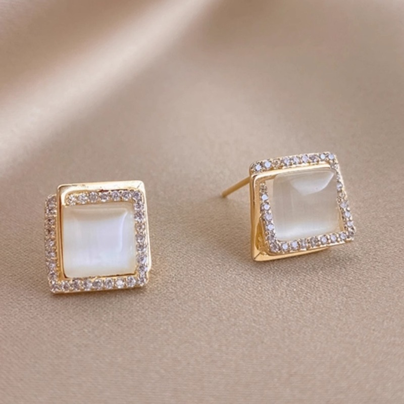 彤彤兔 S925银针几何菱形耳环女镶钻潮简约小巧气质网红耳饰品