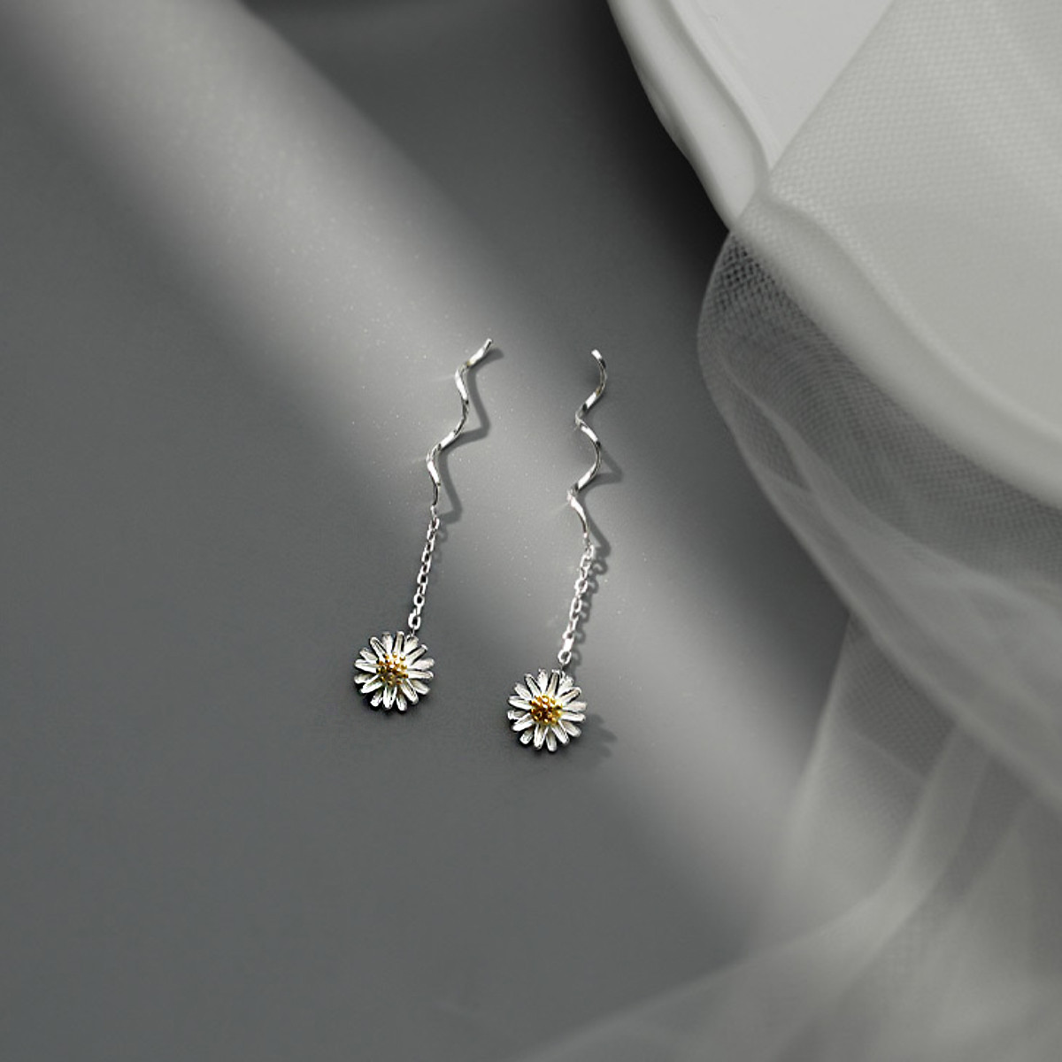 925银小雏菊花朵耳线小清新森系百搭时尚流苏耳环耳饰 353537