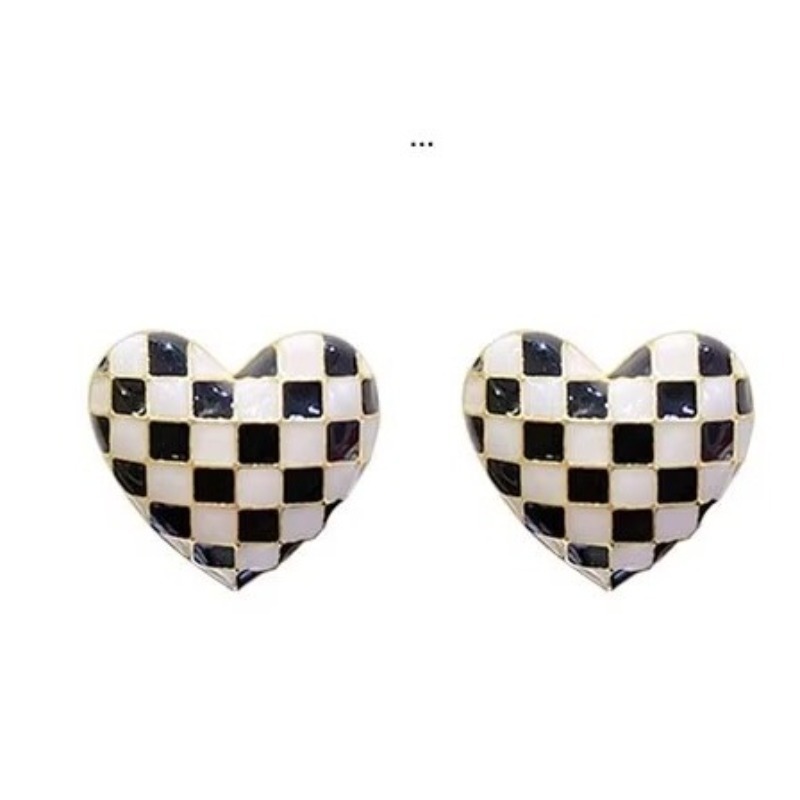 彤彤兔 s925银针爱心黑白棋盘格耳钉独特设计感高级耳环女耳饰