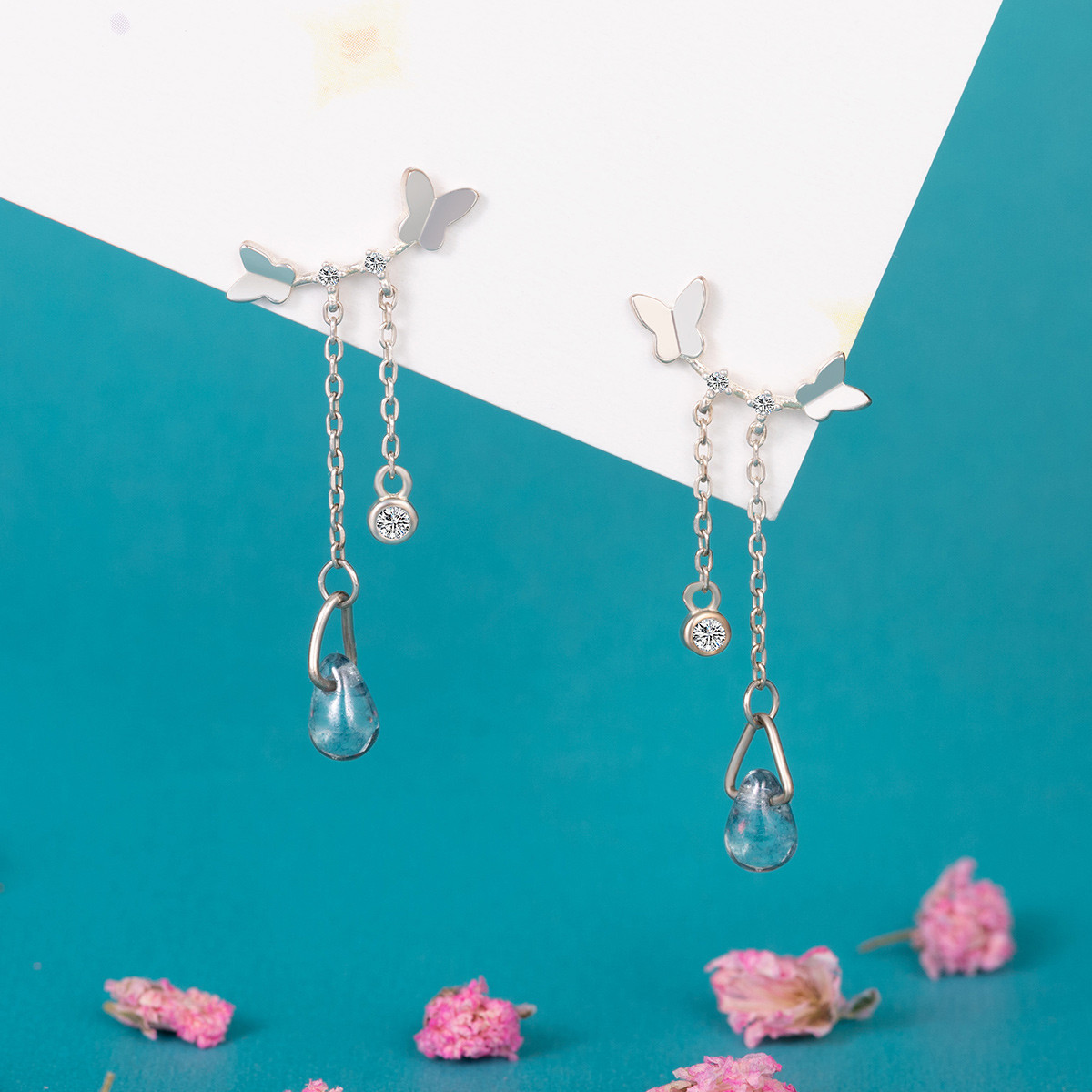 925银小清新蝴蝶耳坠温柔仙气气质长款流苏耳环耳饰 312449