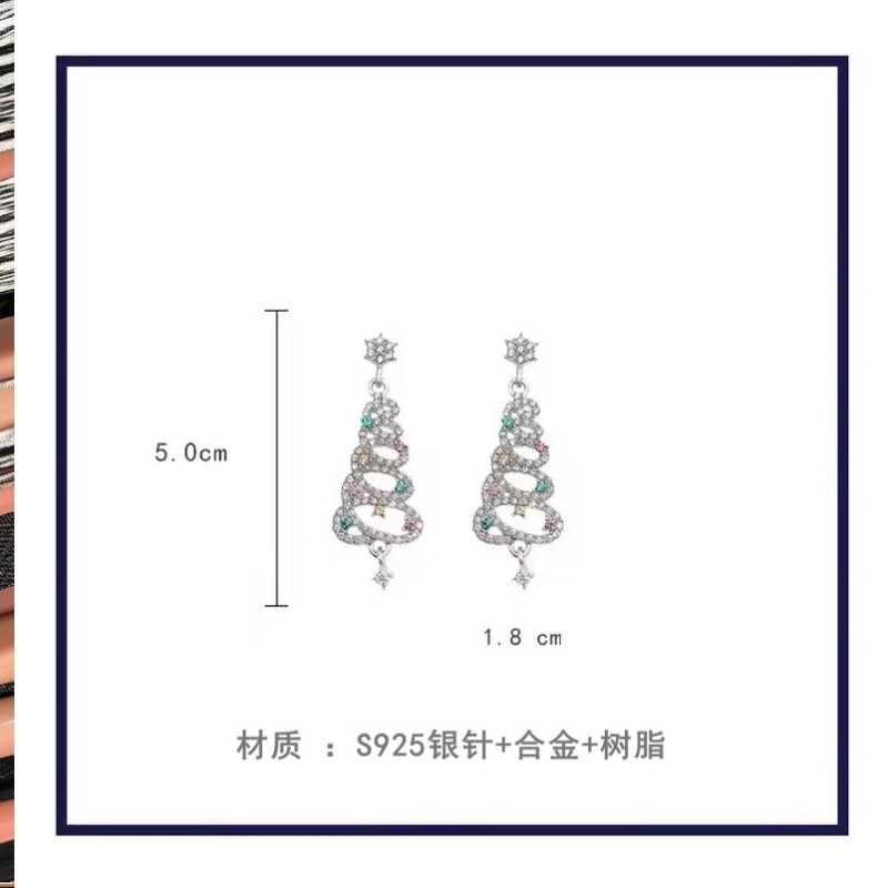 彤彤兔 S925银针欧美圣诞耳环彩色流苏圣诞树耳钉闪钻镂空长款耳饰品
