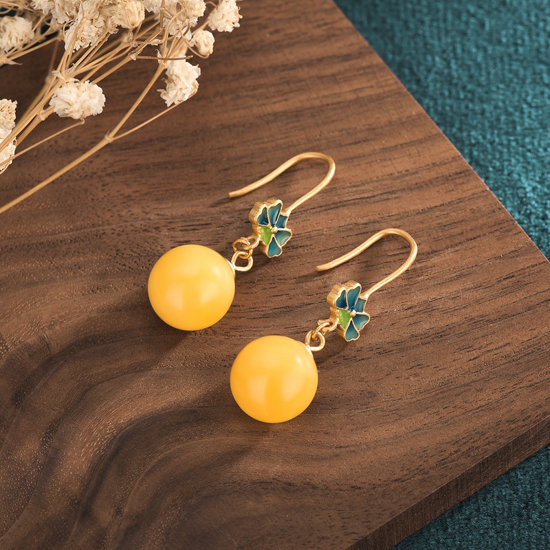 彤彤兔 气质合成玉石耳坠宫廷复古中国风景泰蓝配旗袍耳饰