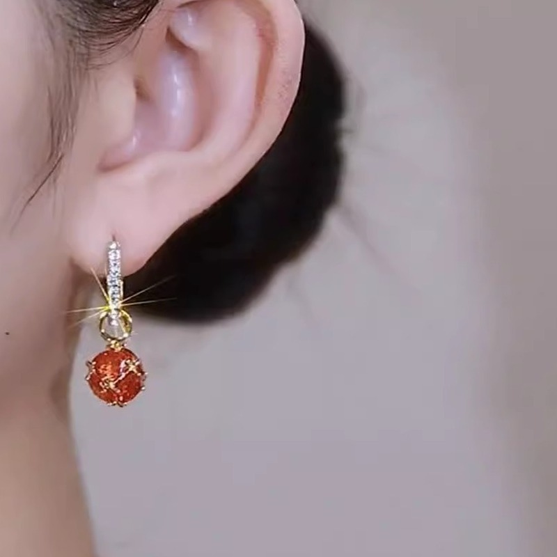 彤彤兔 高级感红色耳饰独特耳环秋冬耳钉爆款小众设计感耳 坠925银