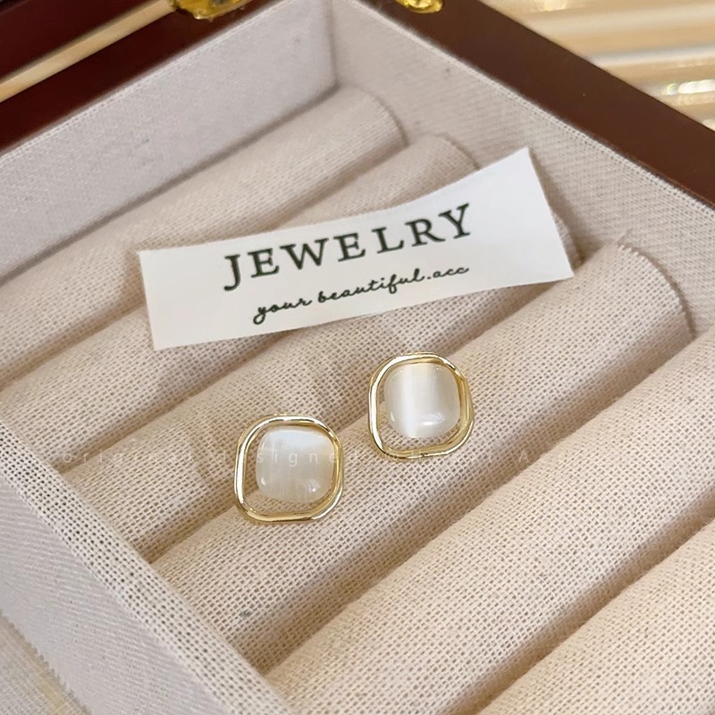 彤彤兔 S925银针方形猫眼石耳钉爆款耳环高级感冷淡风气质耳饰