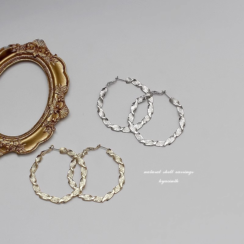 彤彤兔 S925银针法式复古金属耳环女小众设计高级感港风扭曲耳圈百搭耳饰