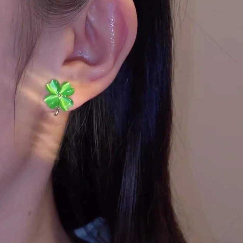 彤彤兔 国潮风小众设计感925银耳针四叶草合成玉石古风耳环耳钉
