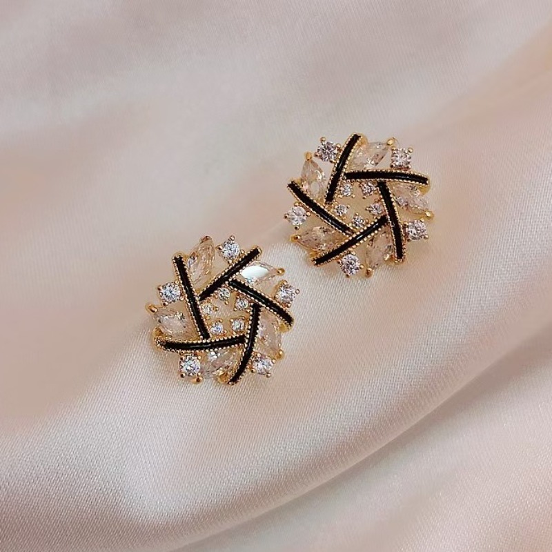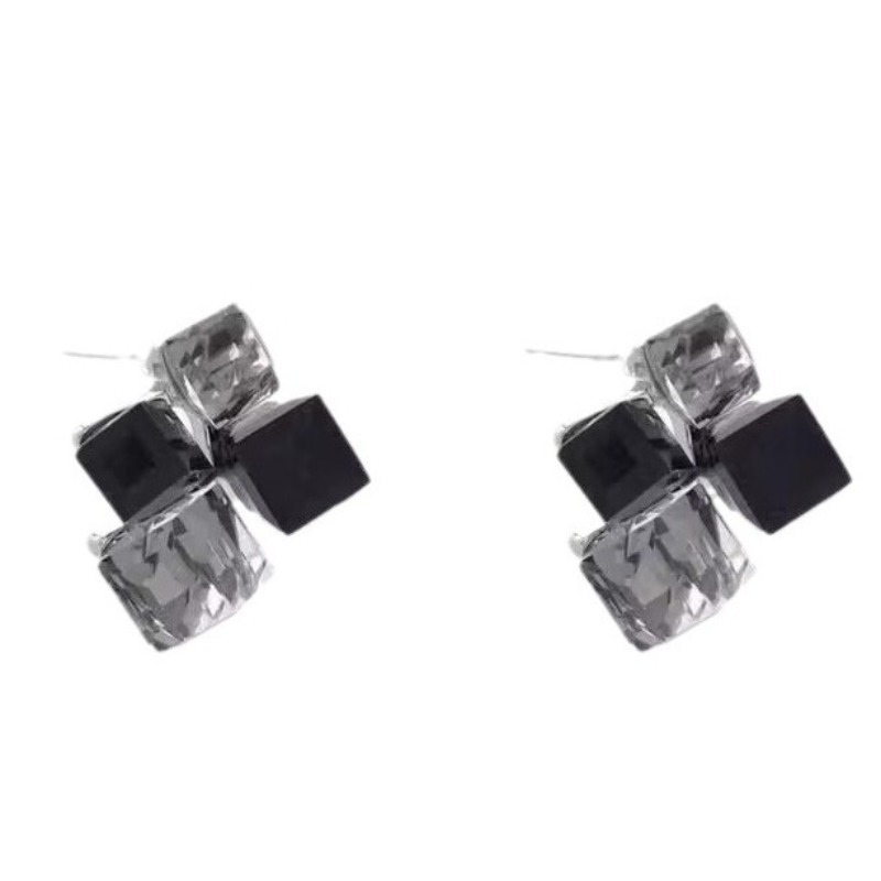 彤彤兔 S925银针复古风秋冬黑色立体钻几何耳环高级感小众设计潮人耳钉女