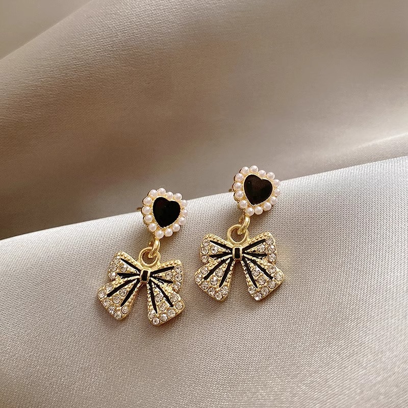 彤彤兔 S925银针珍珠蝴蝶结耳钉高级感耳环潮气质小众设计耳饰
