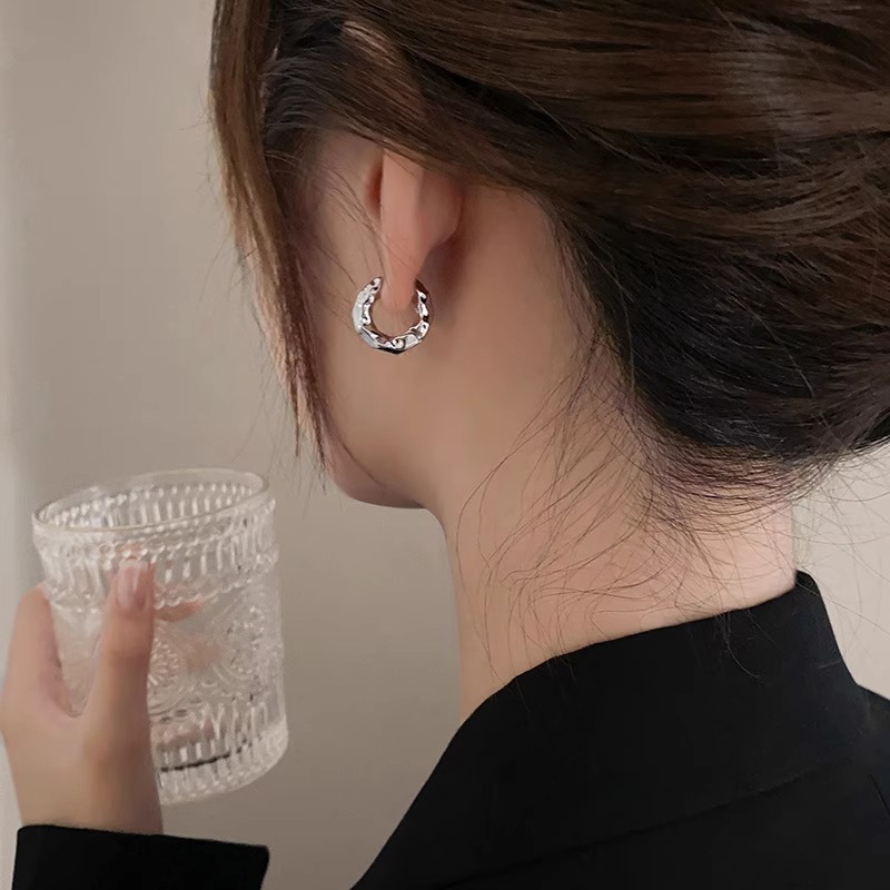 彤彤兔 金属肌理质感耳环女欧美小众设计复古耳圈简约高级设计感耳钉耳饰