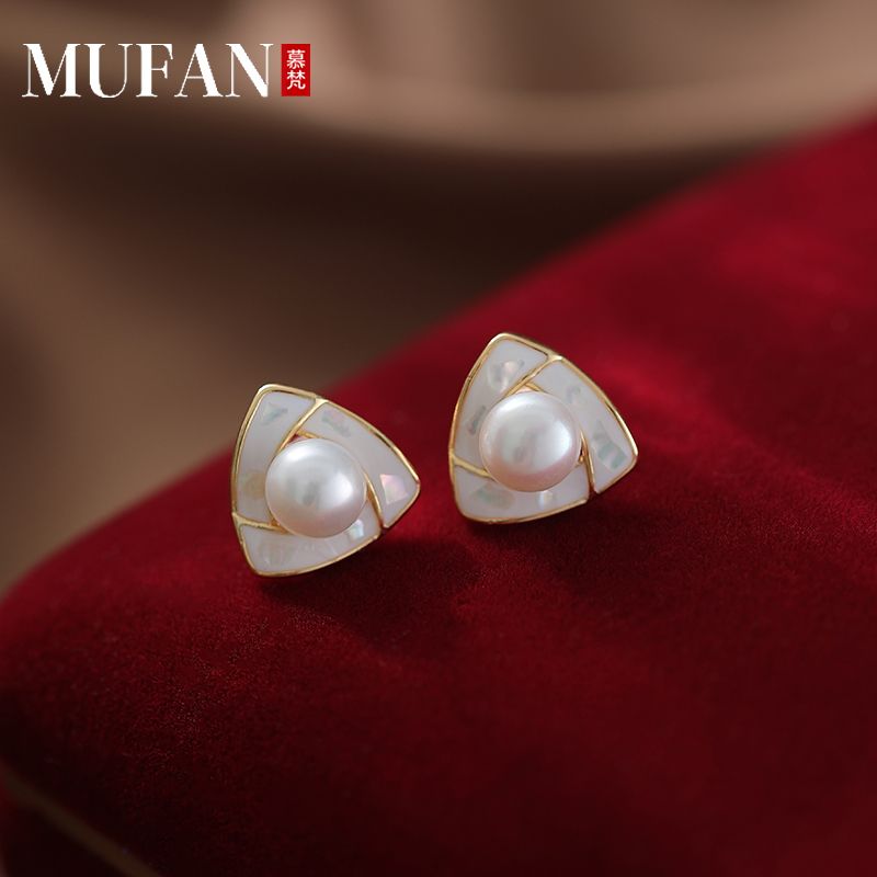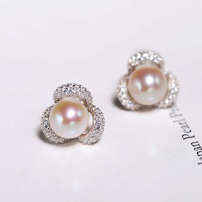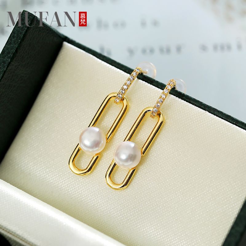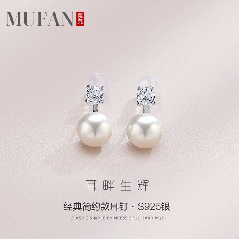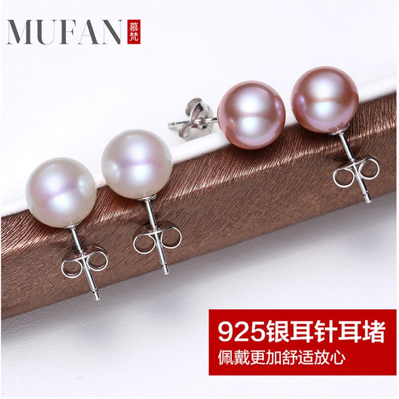 慕梵 念芹7-8mm精选强光淡水珍珠耳钉送女友 S925银锆设计款【A367】