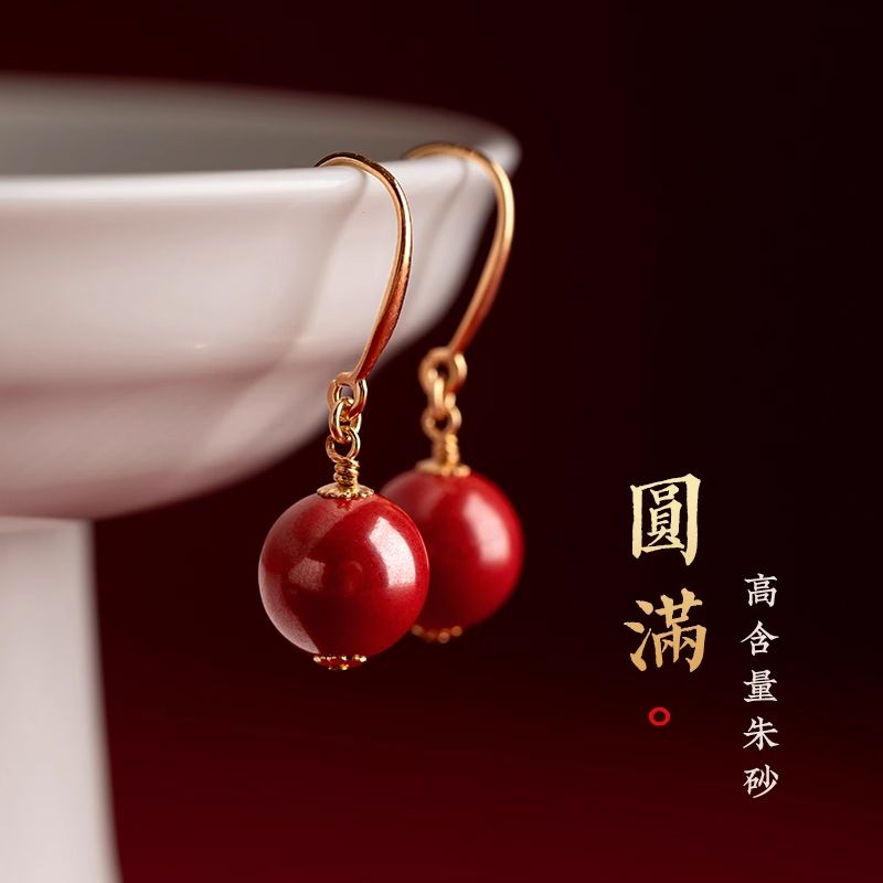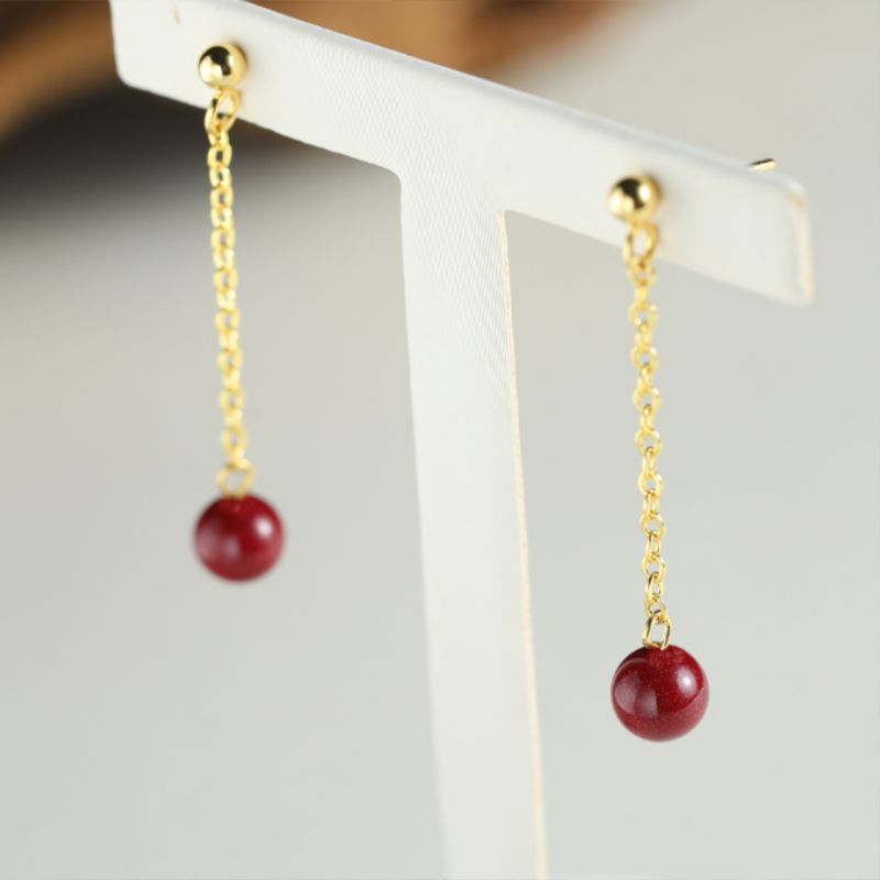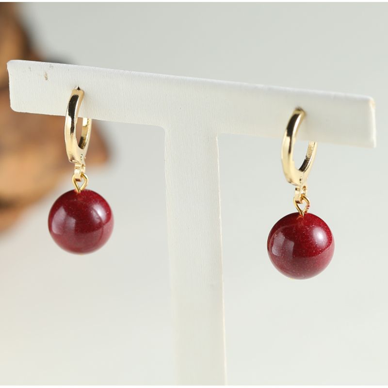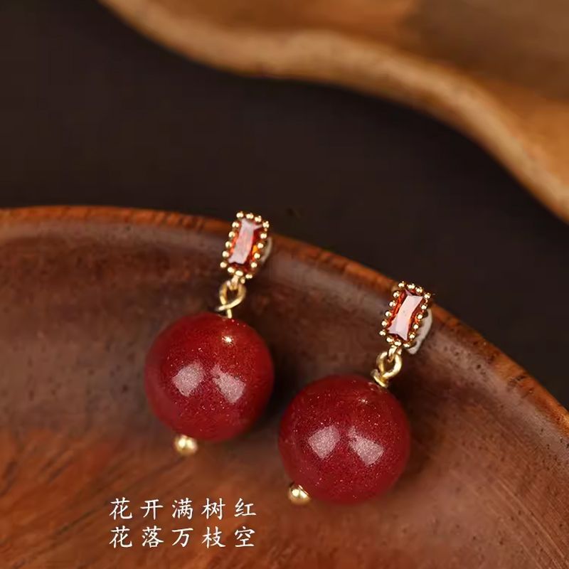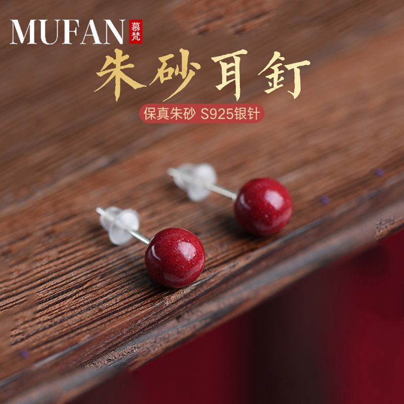 经典百搭朱砂原石小豆豆耳钉耳环S925银