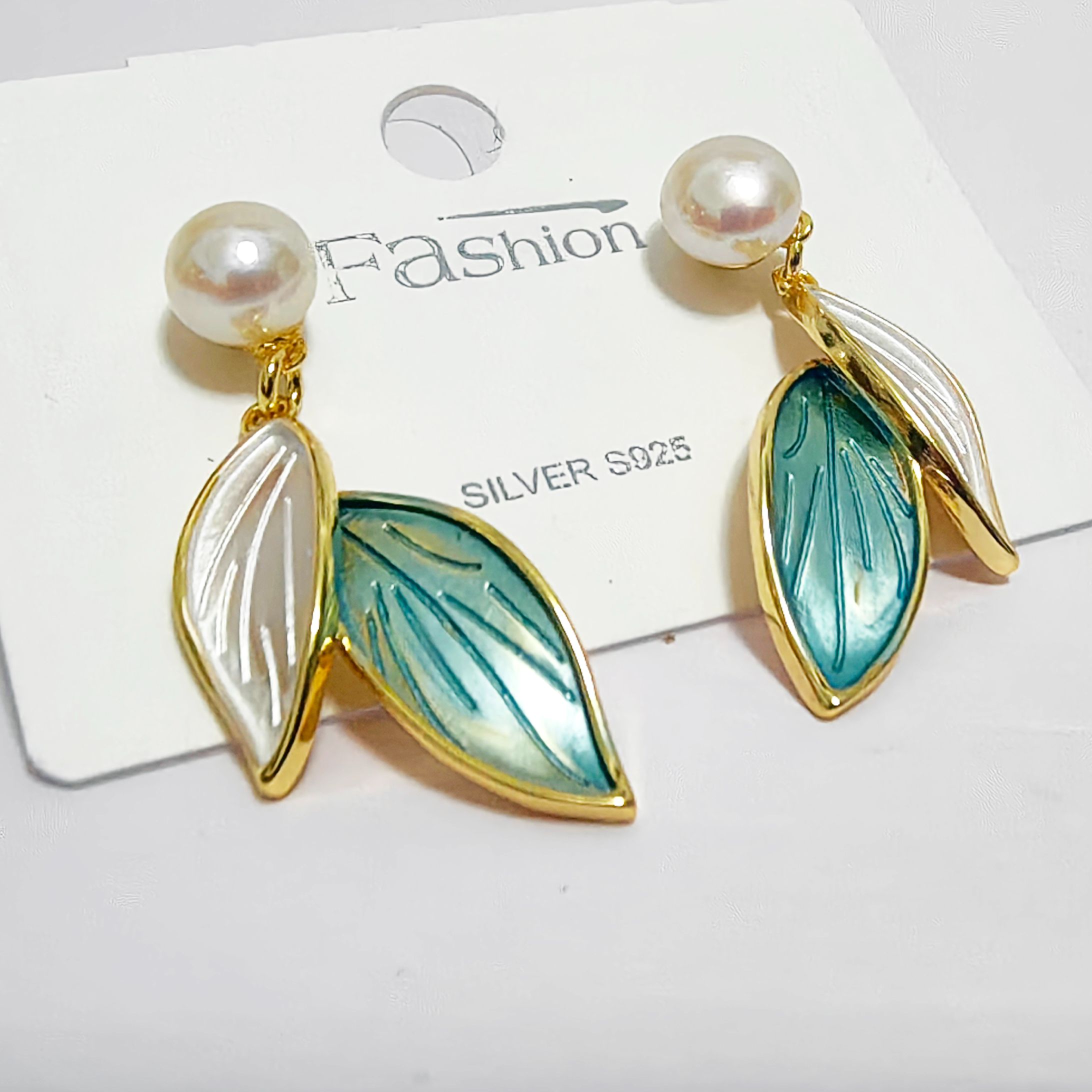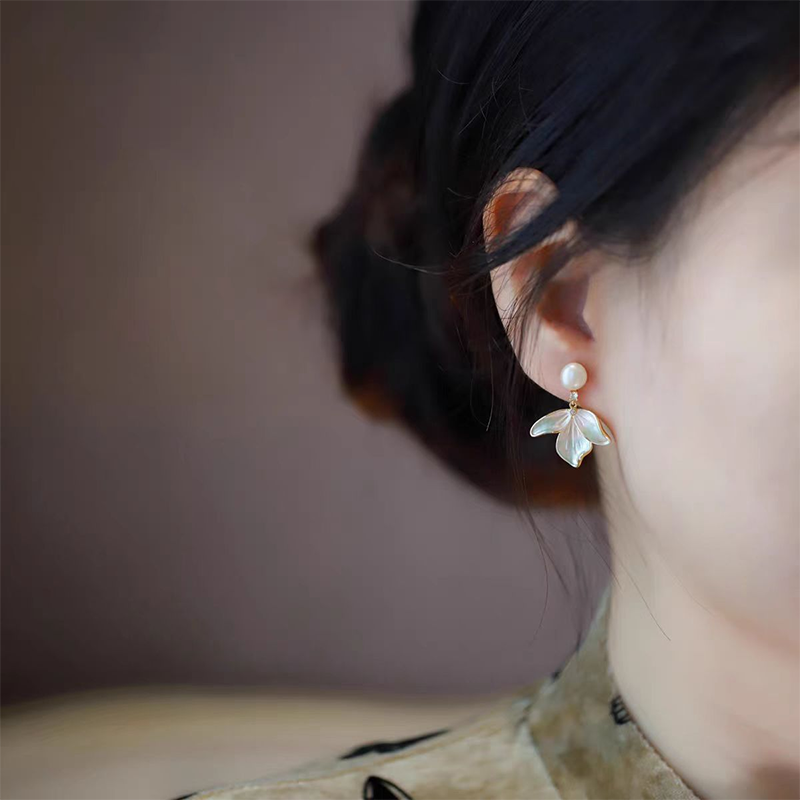 慢婕树叶淡水珍珠耳环 6-7mm 925银针
