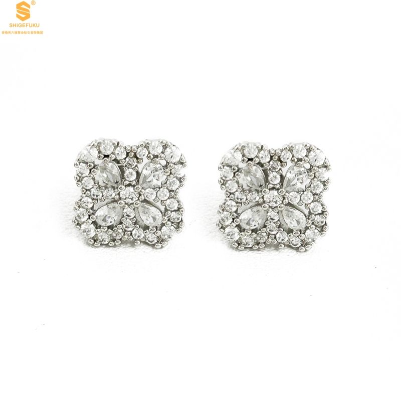 香港周六福黄金钻石首饰幸运满钻四叶草K铂金耳钉