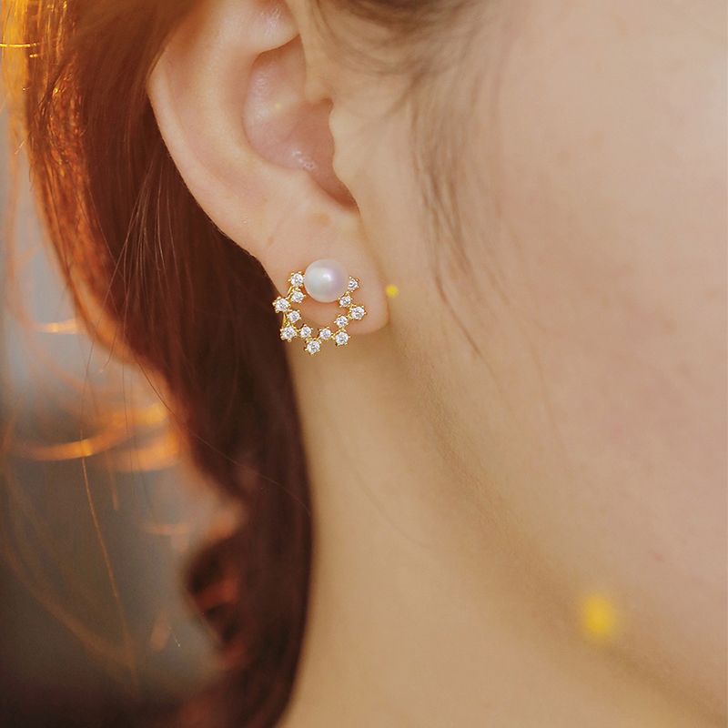 妙语 4-4.5mm圆珠强光淡水珍珠一款多戴耳环 14K注金【A356】