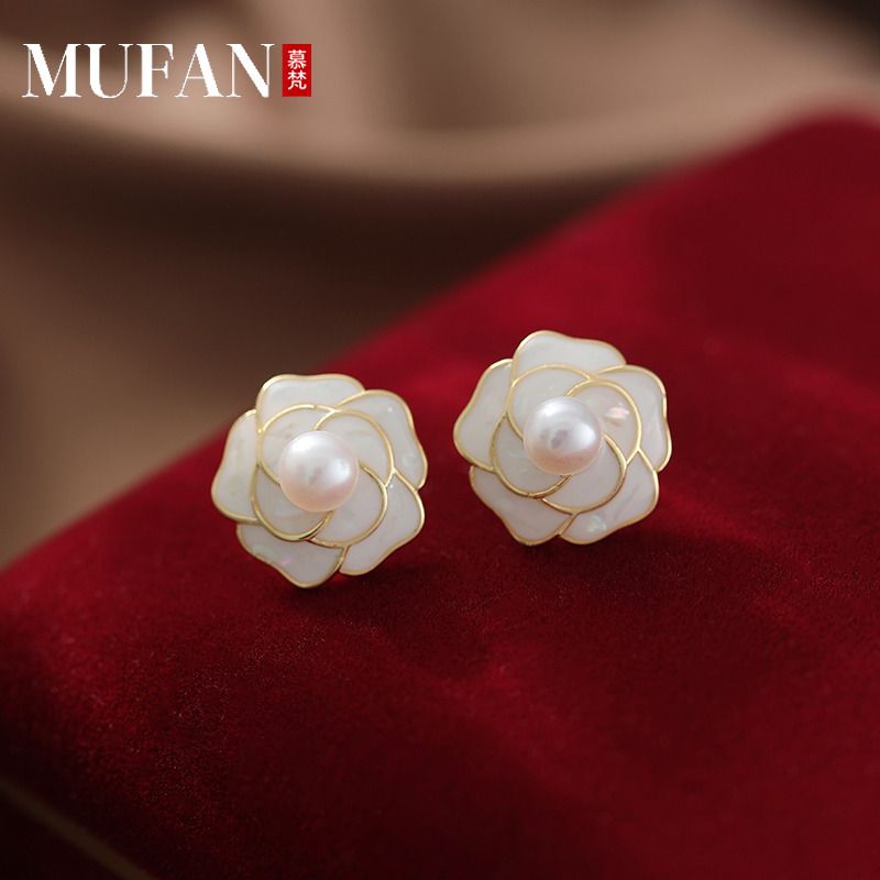 慕梵 玫瑰花滴釉工艺淡水珍珠耳环