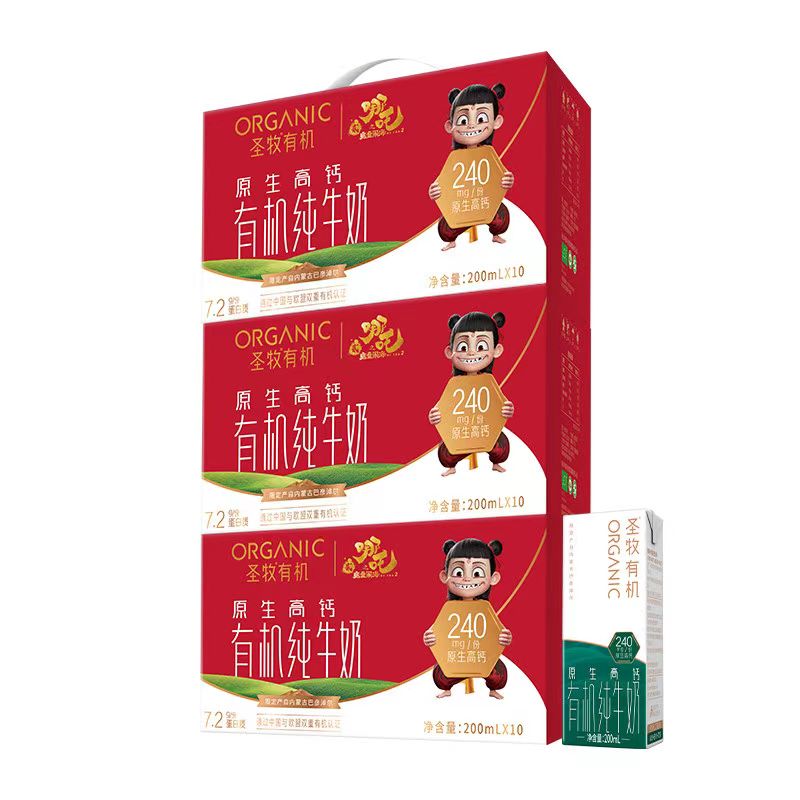 圣牧有机纯牛奶 原生高钙120mg 3.6g蛋白 哪吒礼盒 便携装 200mL*10盒*3提 1月产