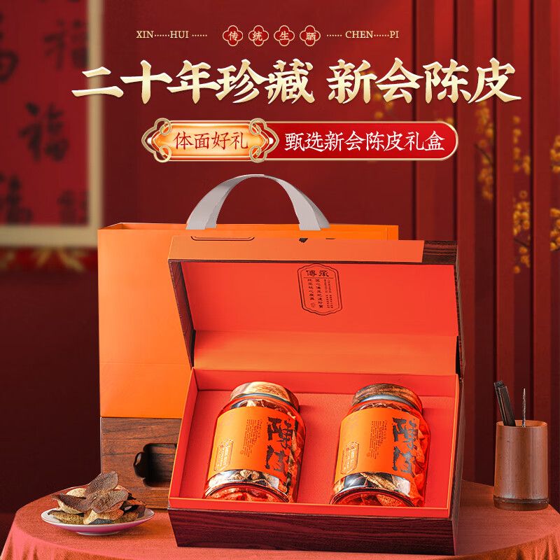 杰盈陈皮新会20年东甲陈皮珍藏版玻璃瓶礼盒装250g送礼送朋友