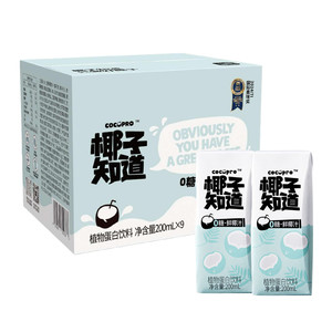 椰子知道0糖鲜椰汁整箱200ml*9盒