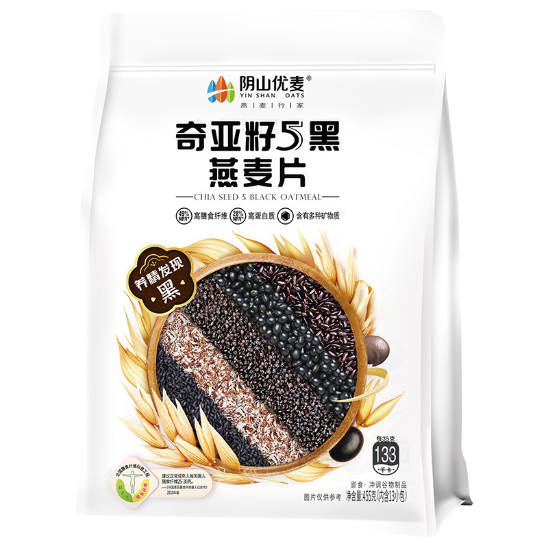 阴山优麦小燕子奇亚籽5黑燕麦片455克(内含13小包)/袋装内含小袋即食冲泡内蒙古