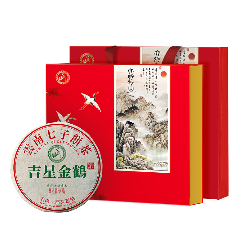 吉星金鹤英红九号红茶/普洱生茶普洱生茶357克*1饼/盒送礼佳品礼盒装茶叶