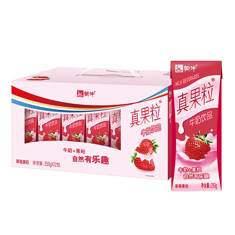 蒙牛 真果粒草莓果粒250g×12盒草莓真果粒酸奶可爱成人儿童牛奶早餐奶整箱