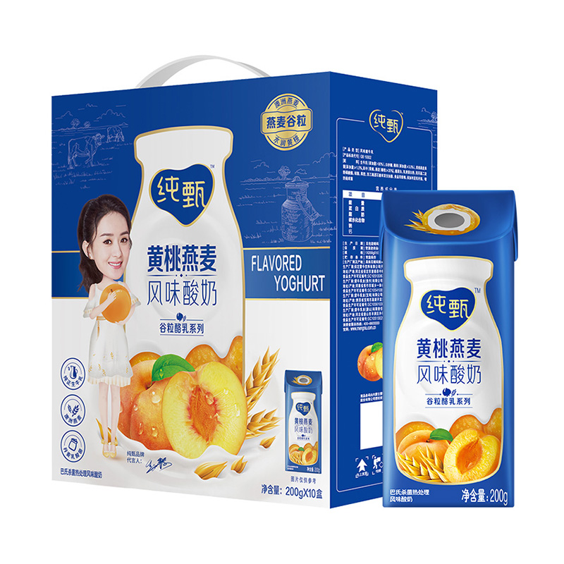 蒙牛 纯甄风味酸牛乳黄桃燕麦味康美笑脸包(礼盒装)200g×10包整箱早餐代餐成人儿童