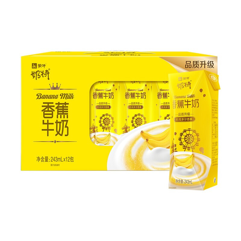 蒙牛 奶特香蕉牛奶利乐钻243ml×12盒 水果味香蕉味口味牛奶饮品成人儿童早餐代餐