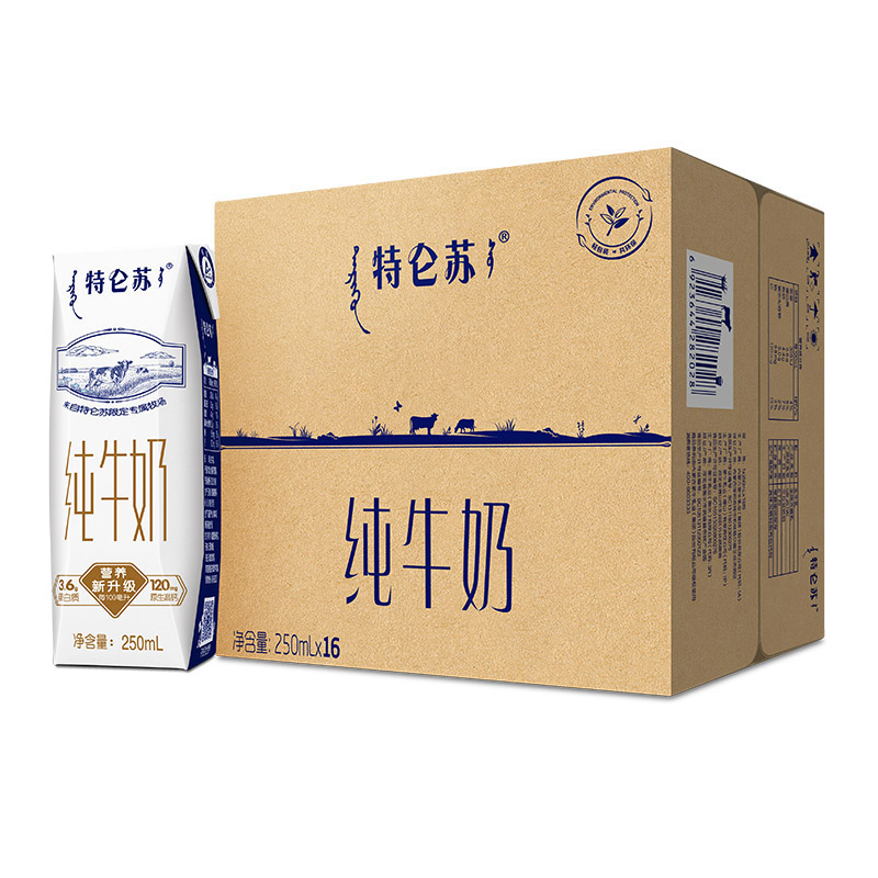 蒙牛特仑苏纯牛奶利乐钻250ml×16包 整箱纯牛奶