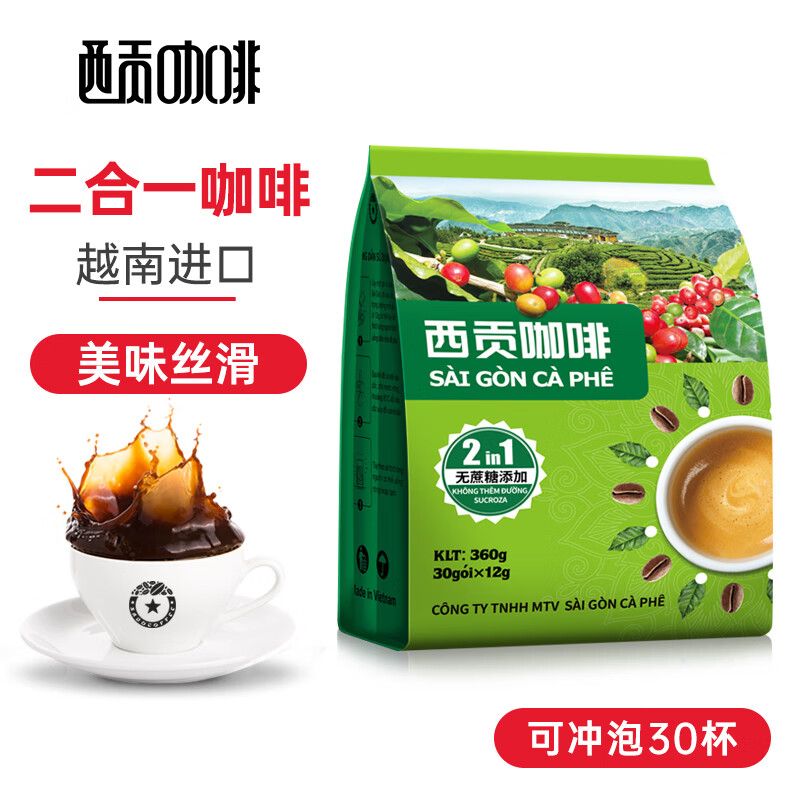 西贡越南进口二合一无蔗糖速溶咖啡粉360g(12gx30条)袋装