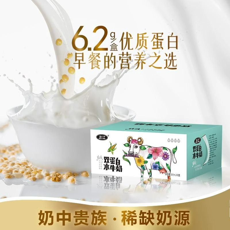 左江 双蛋白水牛奶200ml*8盒整箱动物植物双重营养学生青少年早餐 新牛奶