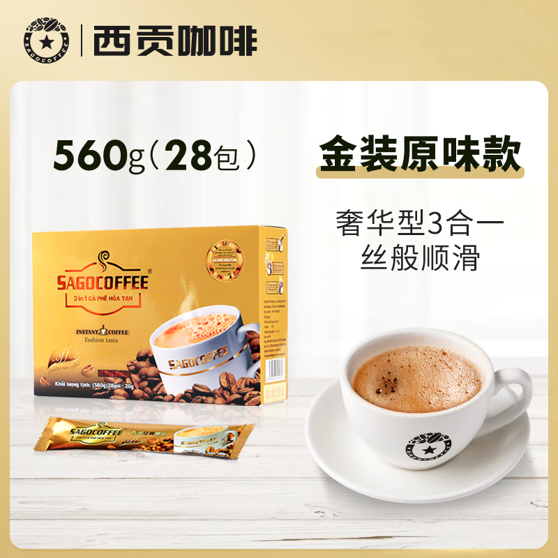 西贡咖啡越南进口速溶咖啡条装三合一原味炭烧猫屎特浓防困咖啡袋装