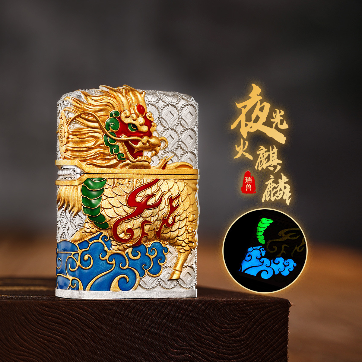 打火机正版夜光珐琅火麒麟礼盒装煤油防风高级感男士珍藏送礼 000414