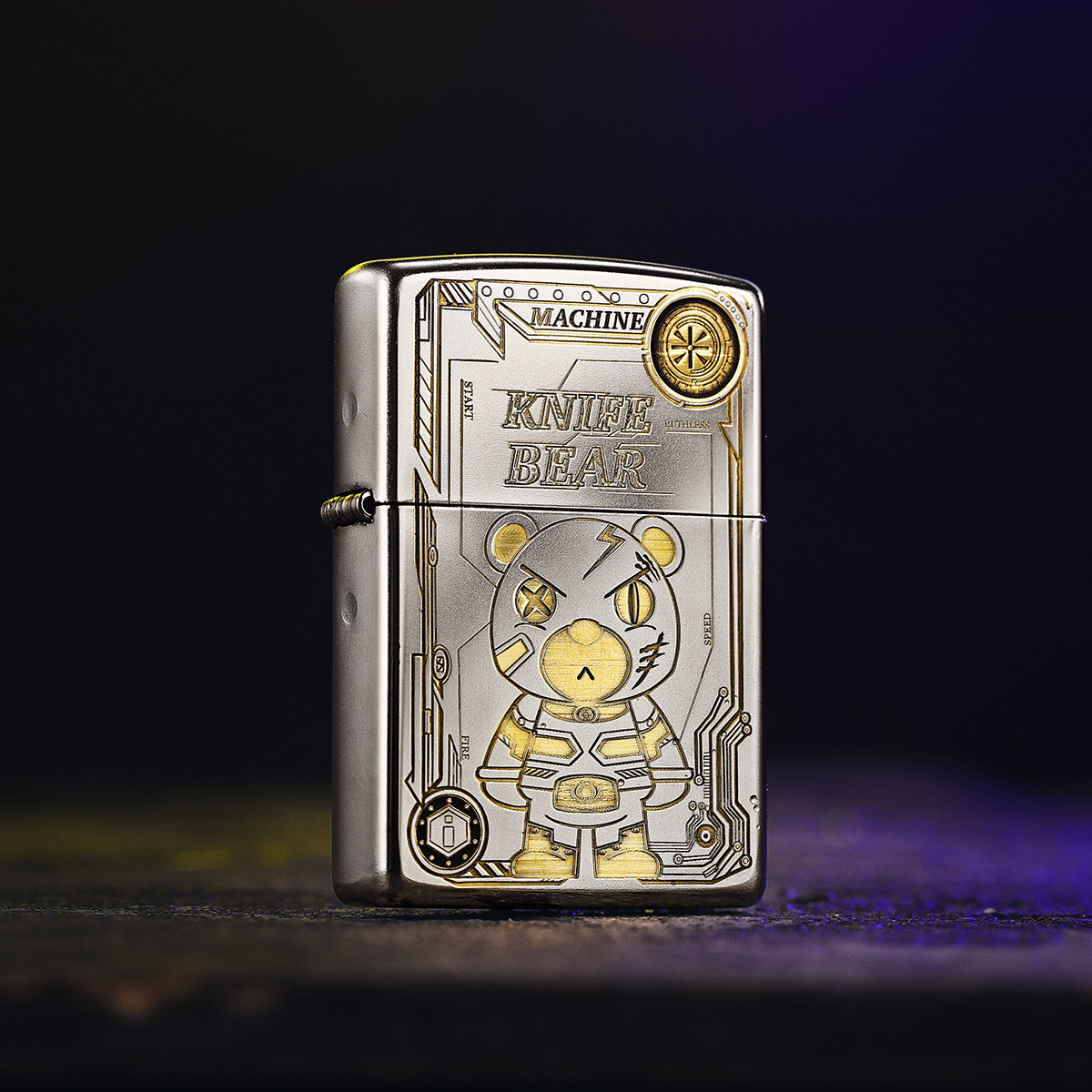 打火机原装正品磨砂深雕双面机甲熊煤油防风礼物送男士 289182