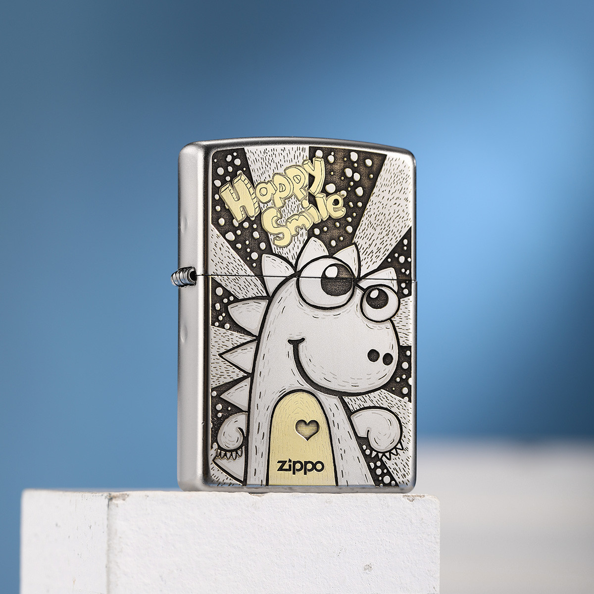 打火机正版镀铬磨砂双面深雕微笑恐龙高级感实用送男士礼物 107358