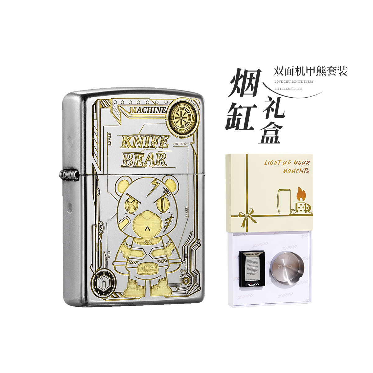 打火机原装正品磨砂深雕双面机甲熊煤油防风礼物送男士 289182