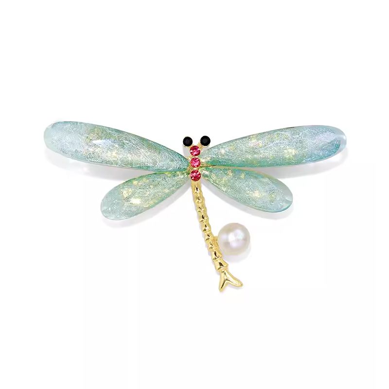 慕梵 亭亭玉立复古蓝色蜻蜓淡水珍珠胸针