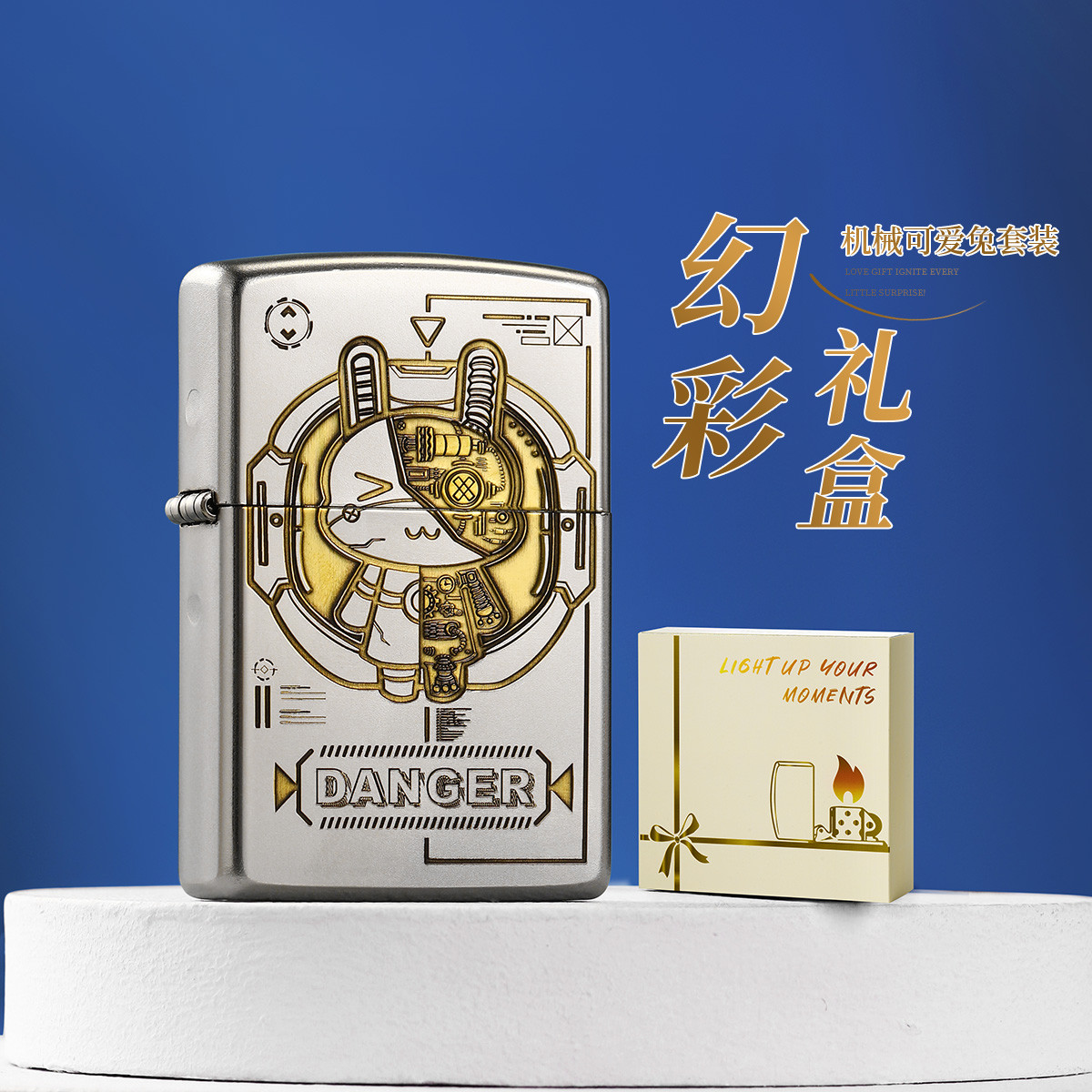打火机正版煤油防风磨砂深雕双面机械可爱兔实用送男友礼物 126942
