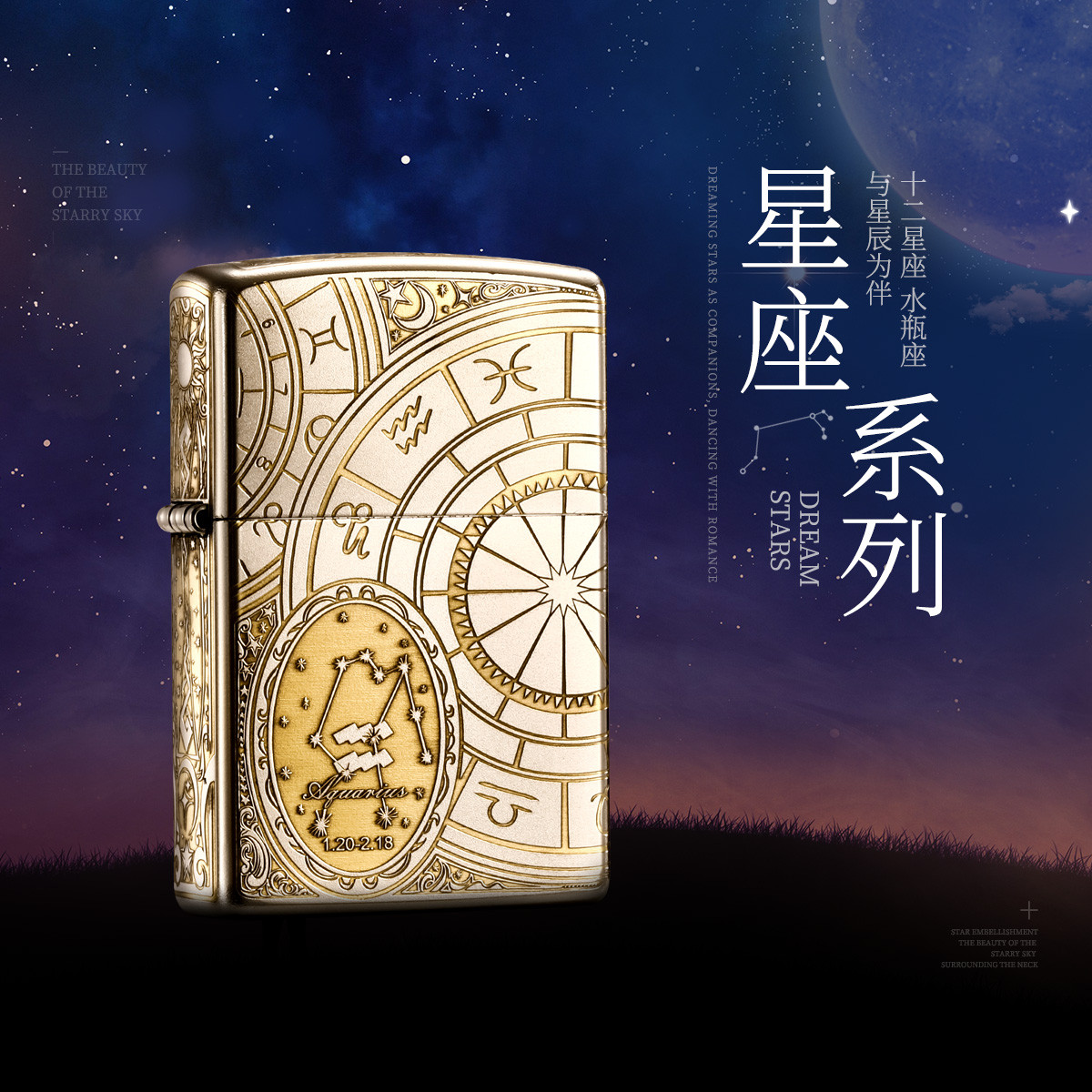 【热销爆款】打火机深雕古银五面十二星座煤油正版高级感男士礼物 678942