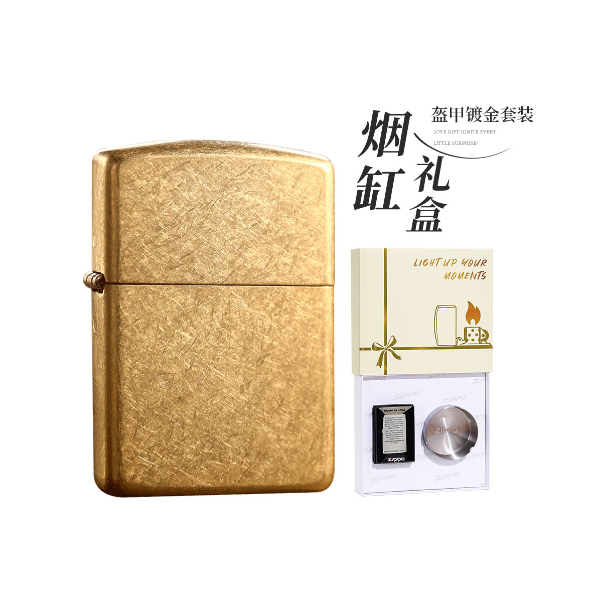 【送礼好物】正版盔甲重机镀金花砂复古打火机轻奢生日礼物送男友 341470