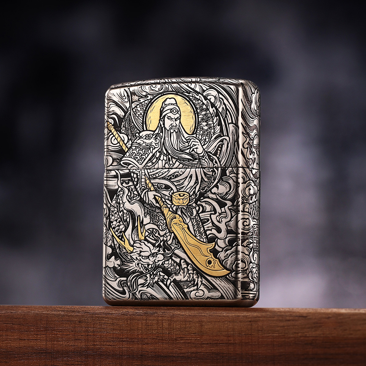 打火机原装正品错金套壳关公木礼盒装煤油防风高级感男士礼品 096798
