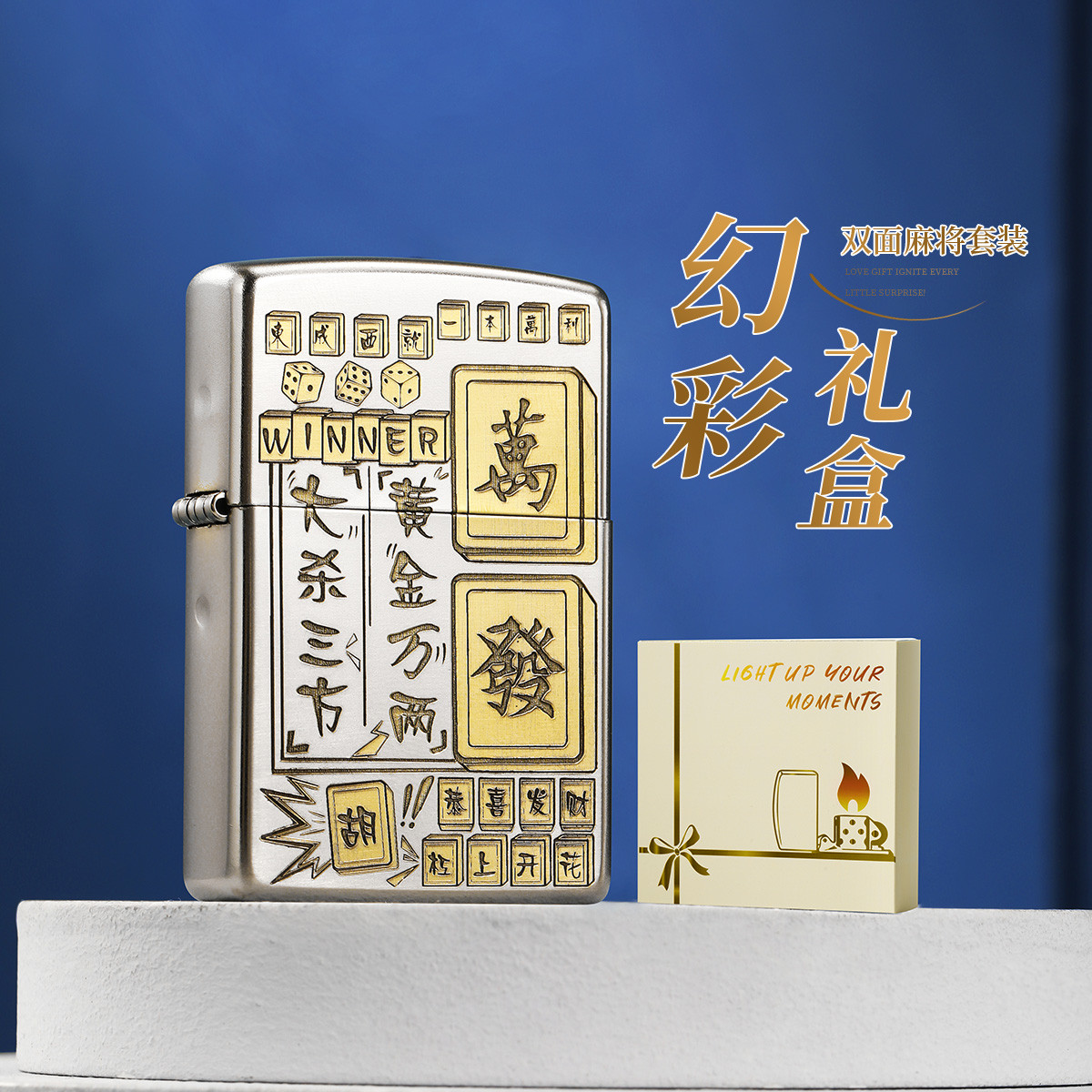 【送礼好物】打火机正品深雕双面麻将创意个性礼盒装送礼男士 034334