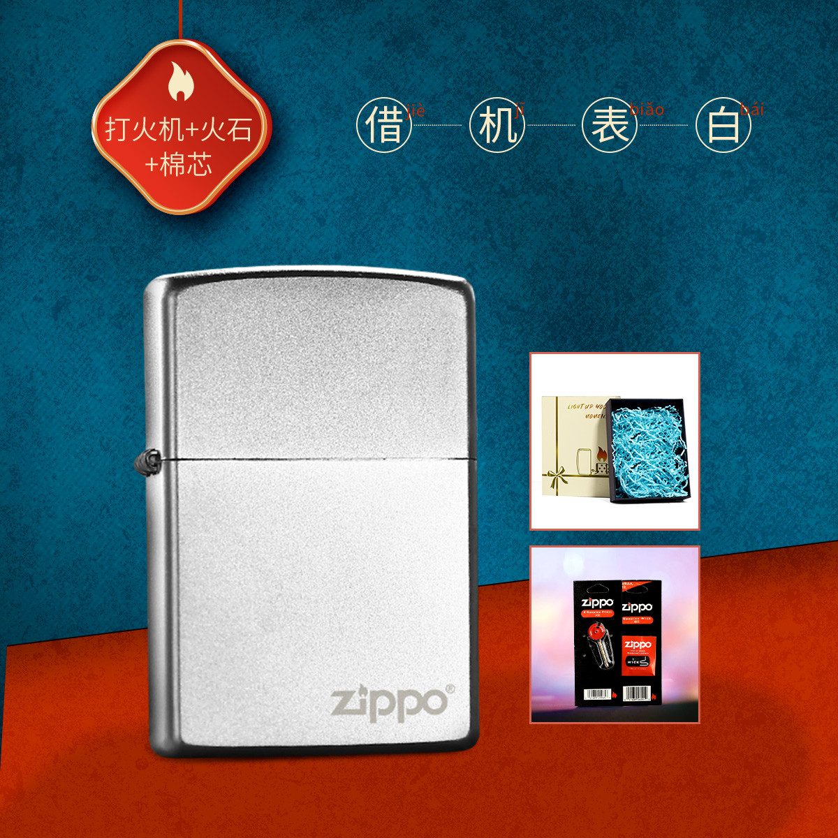 打火机原装正品套装系列煤油防风锻纱镀铬-商标男士礼物 353374