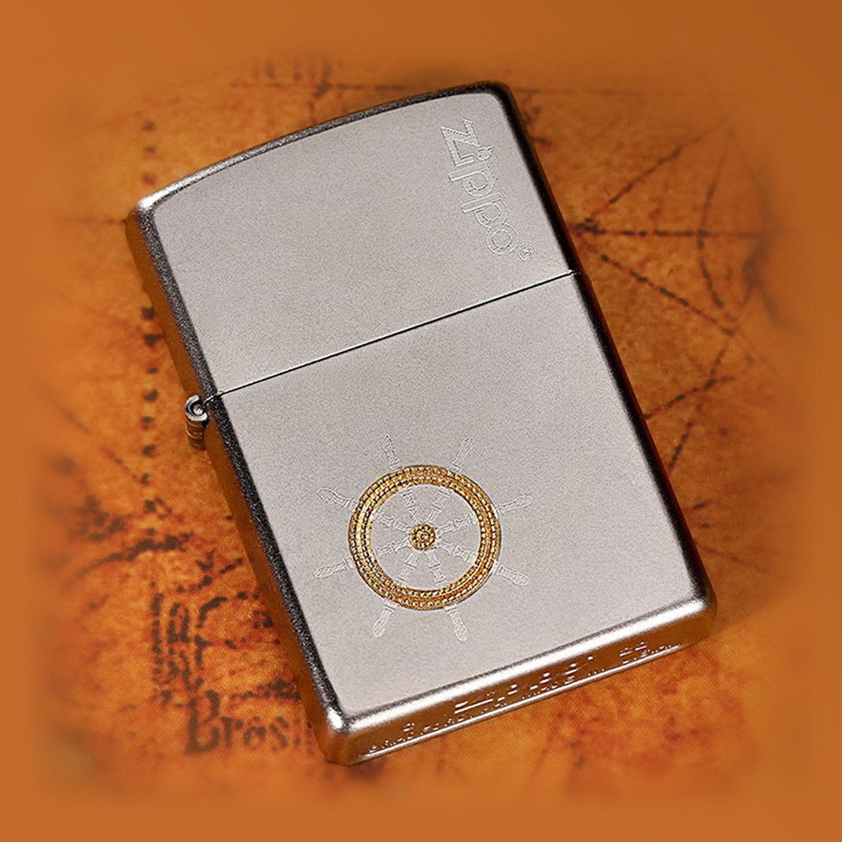 【热销推荐】打火机黄金船舵镀铬礼盒实用大气正版男士生日礼品 365470