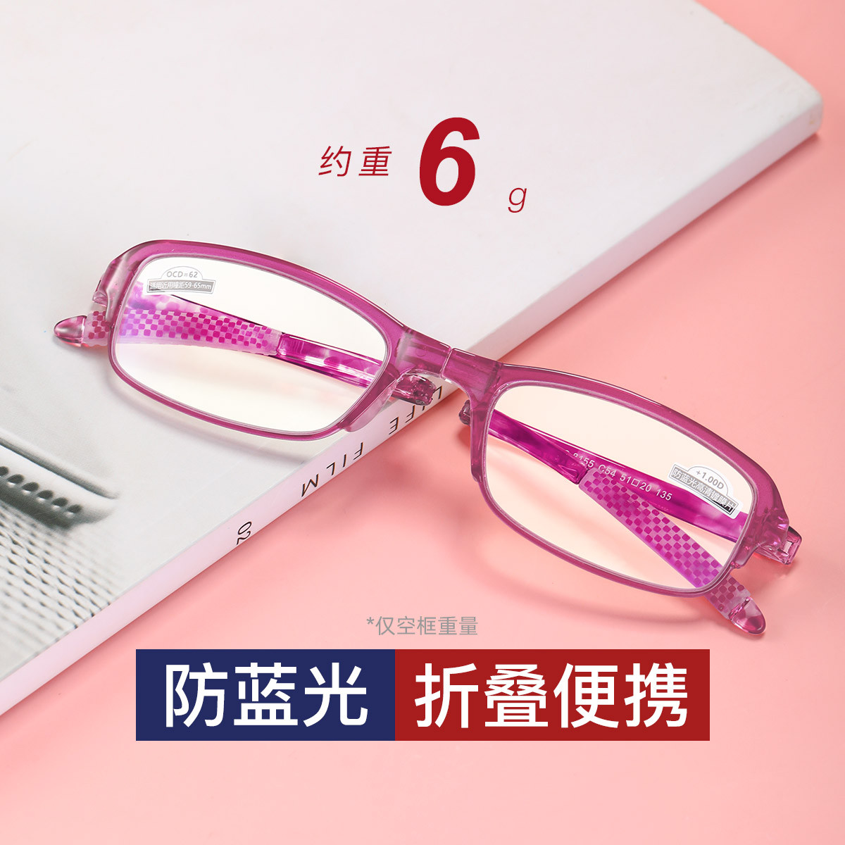 老花镜女防蓝光高清时尚显年轻女式超轻老人老花眼镜旋转可放口袋 311518