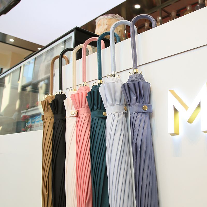 日本FIYU小清新小皮柄16骨长伞 质感满满,有效抗风,时尚耐用
