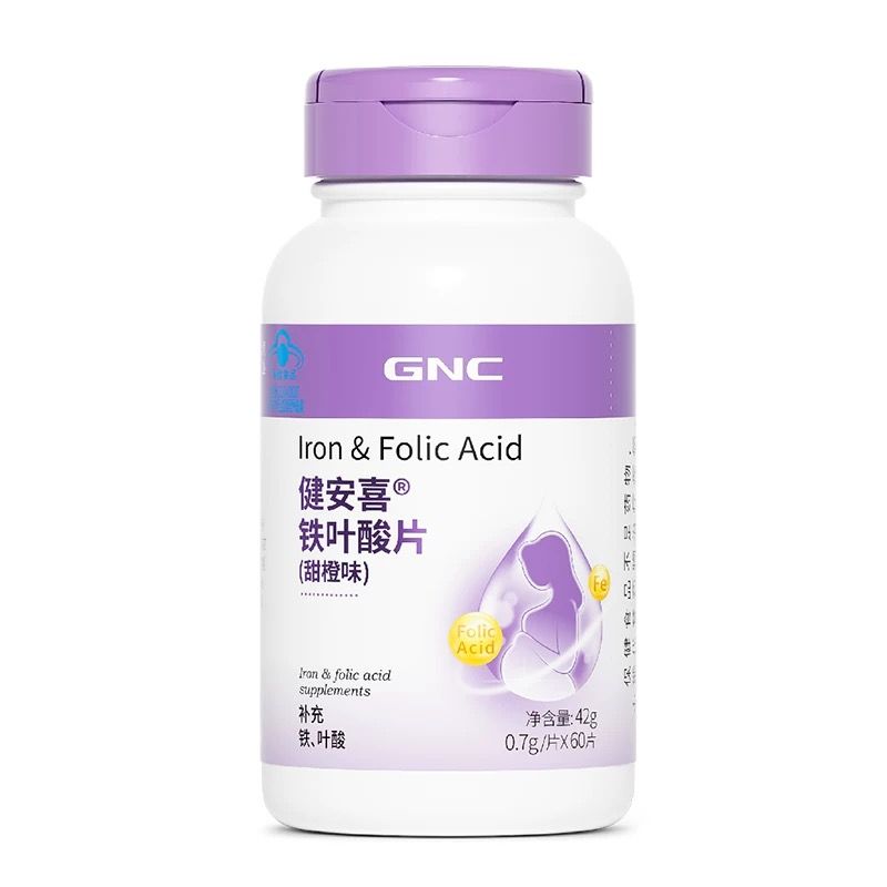 GNC/健安喜 铁叶酸片甜橙味(60片)